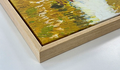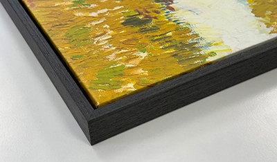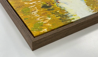Harmonizálja a képét otthona stílusával, és adjon neki elegáns megjelenést. Prémium minőségű, matt felületű fakereteink mélységet és professzionális megjelenést adnak a képnek. A keret és a vászon közötti 5 mm-es rés révén létrejön a „lebegő kép” hatás, amely kiemeli a kép széleit és textúráját.
